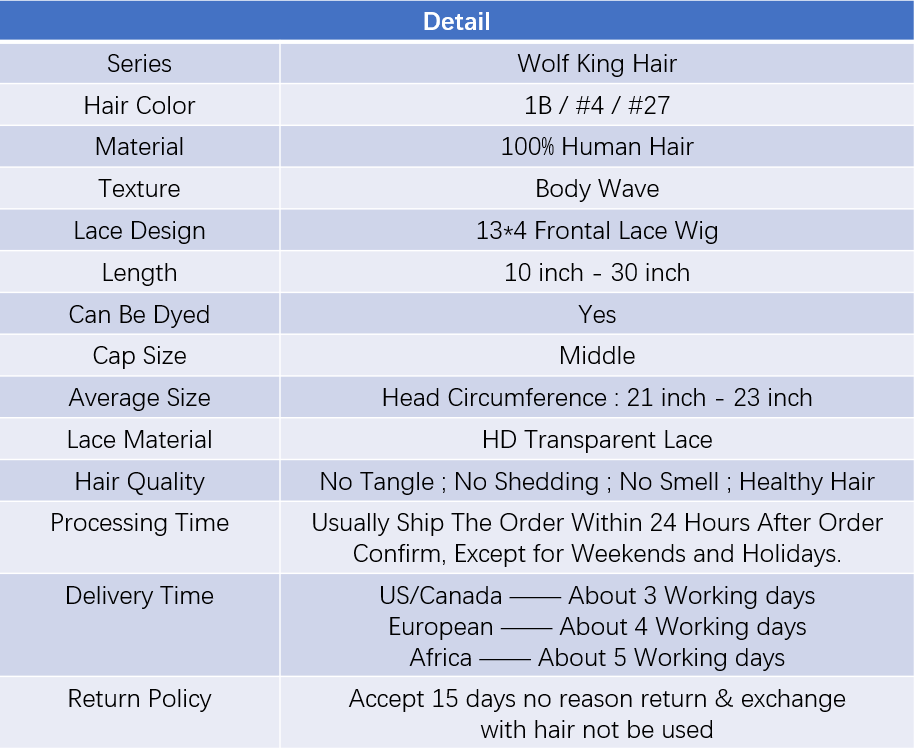 Wolf king 1B/4#/27# body wave 13*4 HD transparent frontal lace wig 150% Density