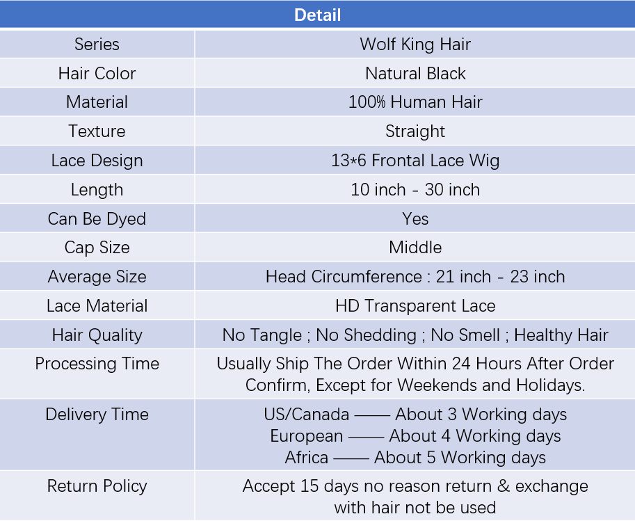 Wolf king Straight 13*6 front lace wig natural color 100% human hair