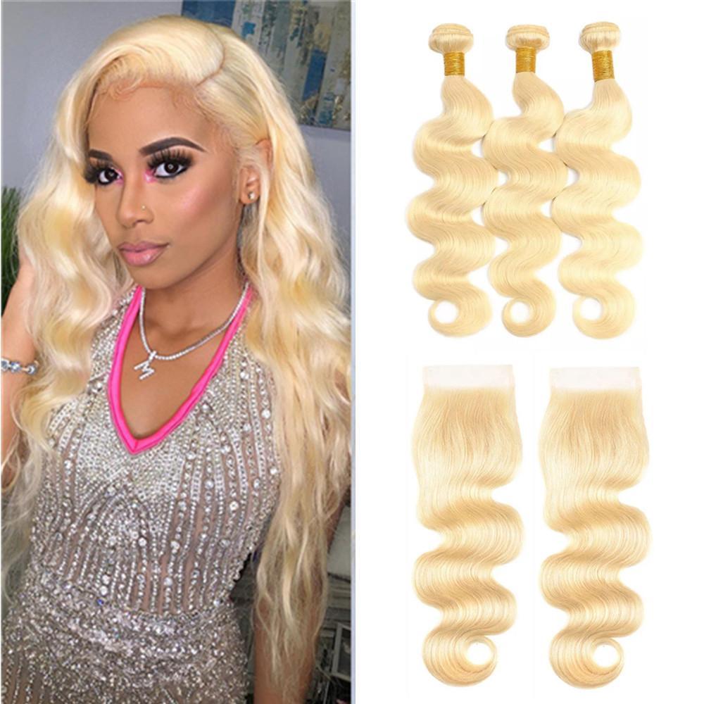 Wolf king 613# body wave 3 bundles with 4*4 HD transparent closure virgin human hair weft