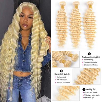 Wolf king 613# deep wave 3 bundles 613# color virgin human hair weft