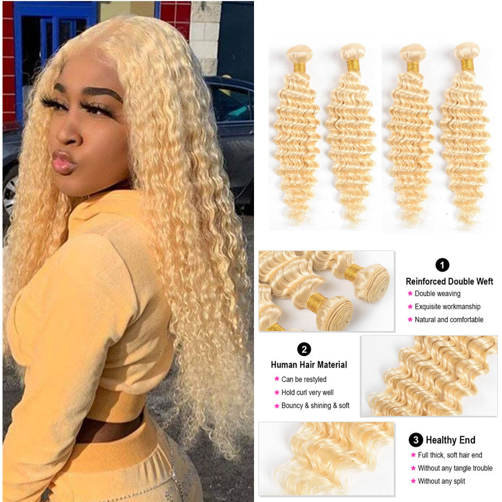Wolf king 613# deep wave 4 bundles 613# color virgin human hair weft