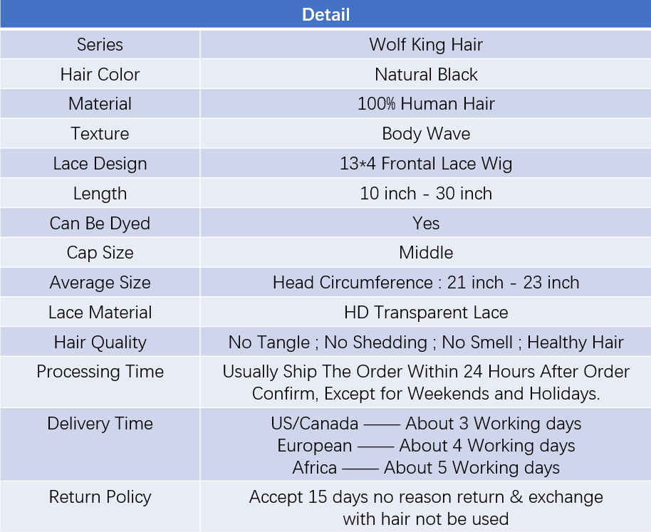 Wolf king body wave 13*4 HD transparent front lace wig natural color 100% human hair