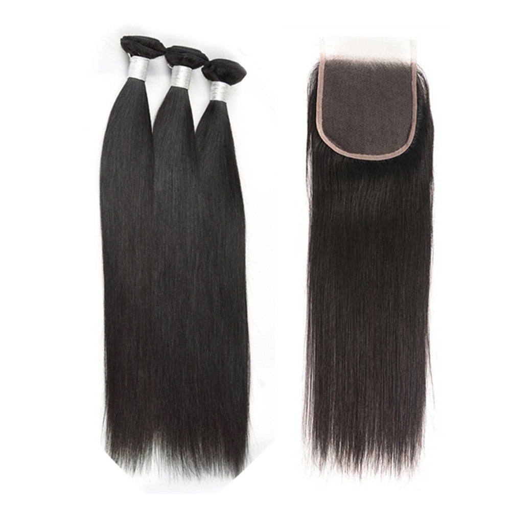 Wolf king straight 3 bundles with 4*4 HD transparent closure natural color virgin human hair weft