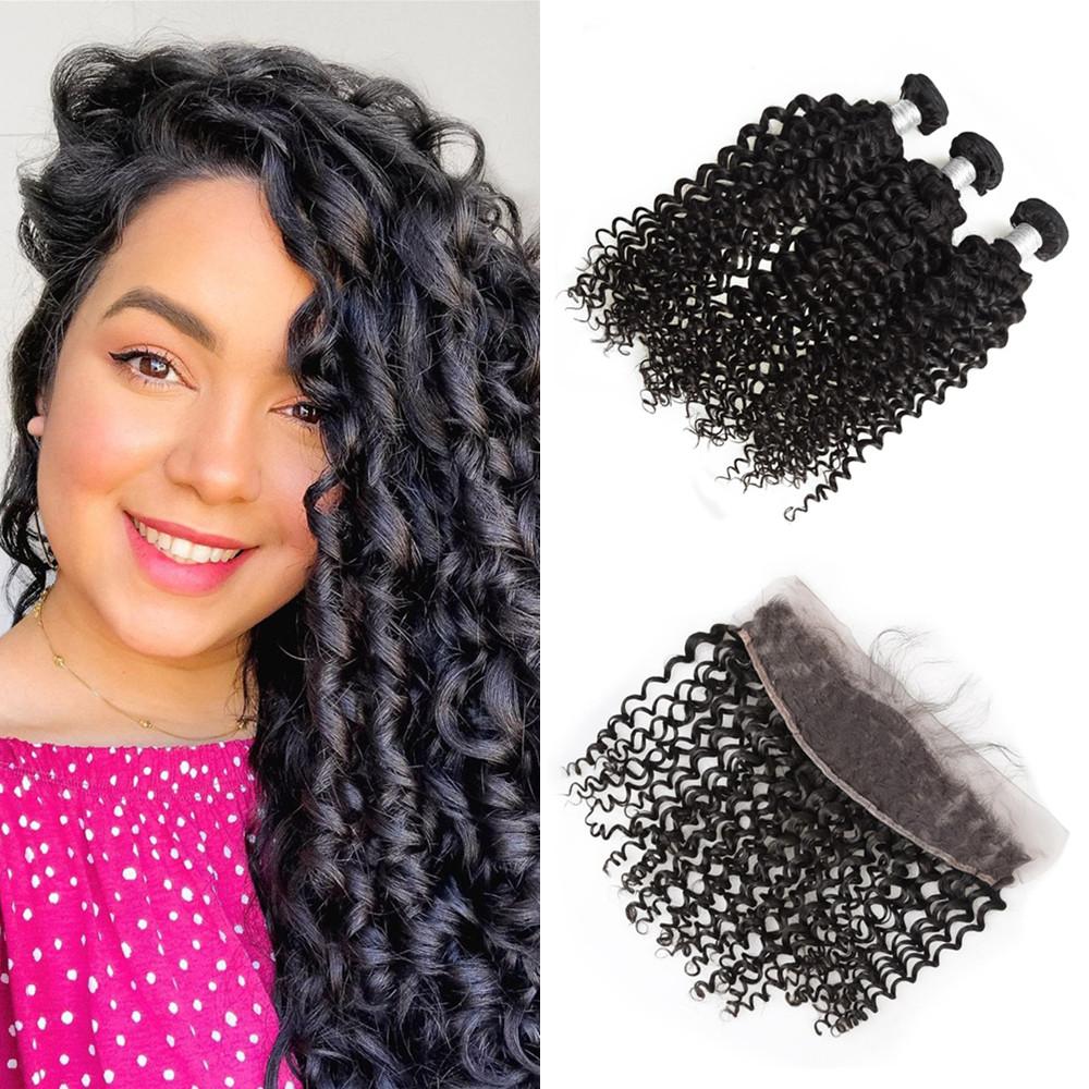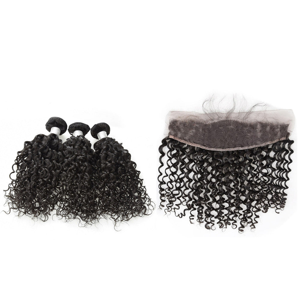 Wolf king curly 3 bundles with 13*4 HD transparent frontal natural color 100% human hair