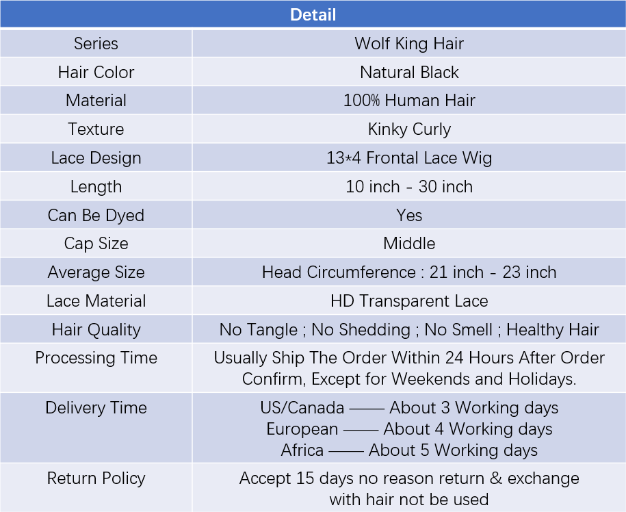 Wolf king kinky curly wave 13*4 HD transparent front lace wig 100% human hair naural color