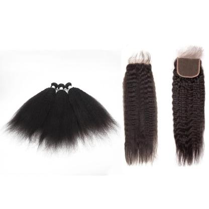 Wolf king kinky straight wave 3 bundles with 4*4 HD transparent closure natural color virgin human hair weft