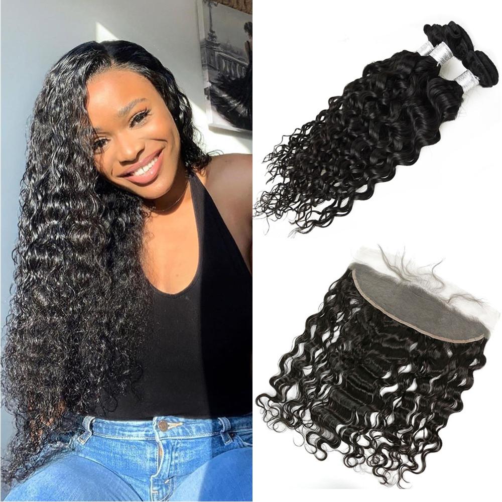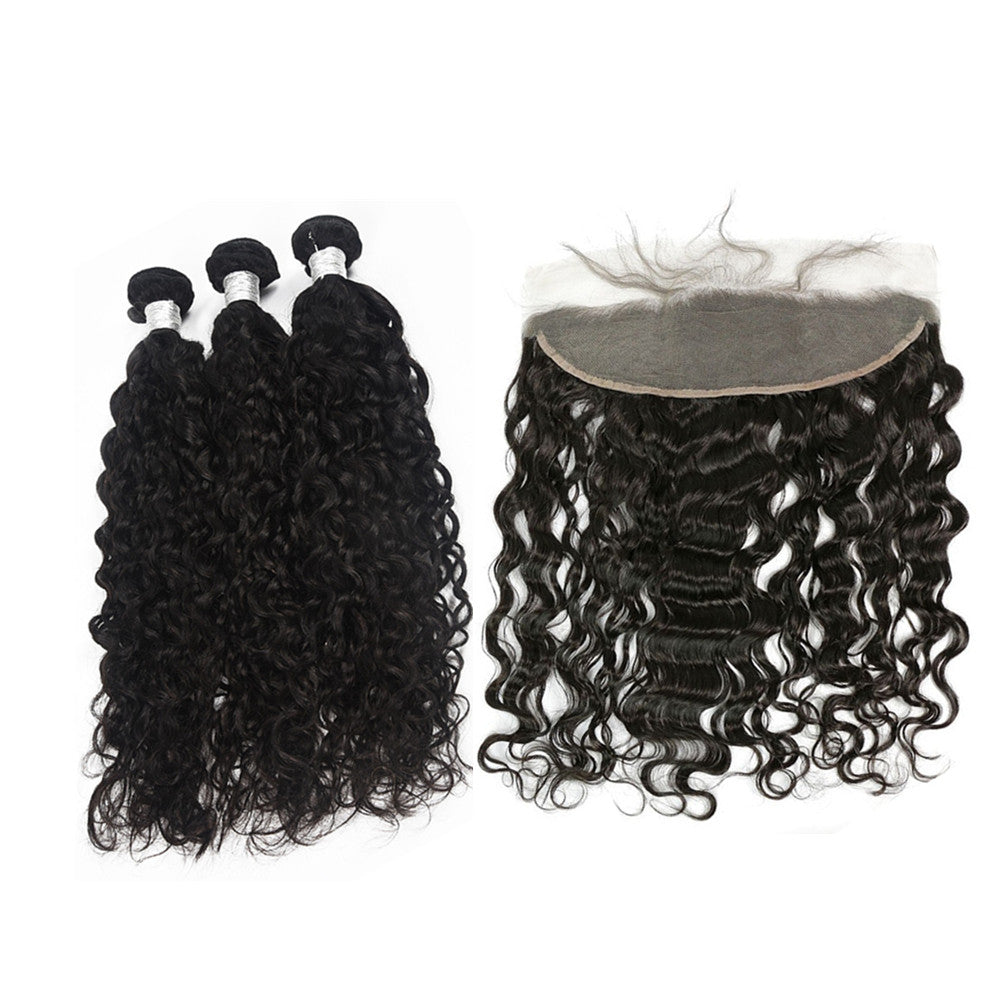 Wolf king natural wave 3 bundles with 13*4 HD transparent frontal natural color 100% human hair