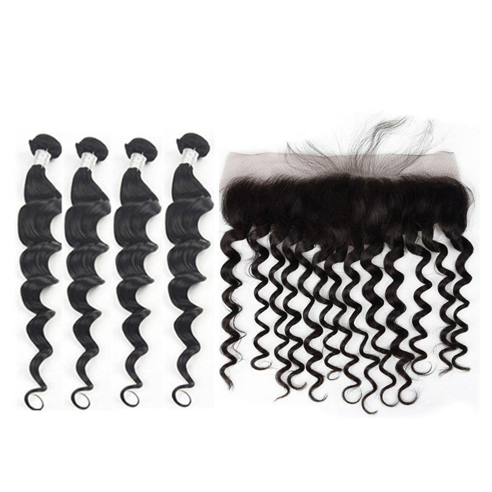 Wolf king loose wave 4 bundles with 13*4 HD transparent frontal natural color virgin human hair weft