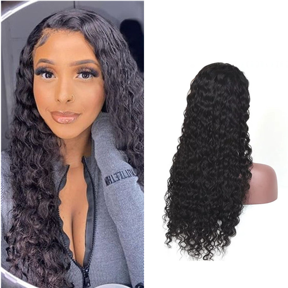 Wolf king water wave 4*4 HD transparent closure wig 100% human hair natural color