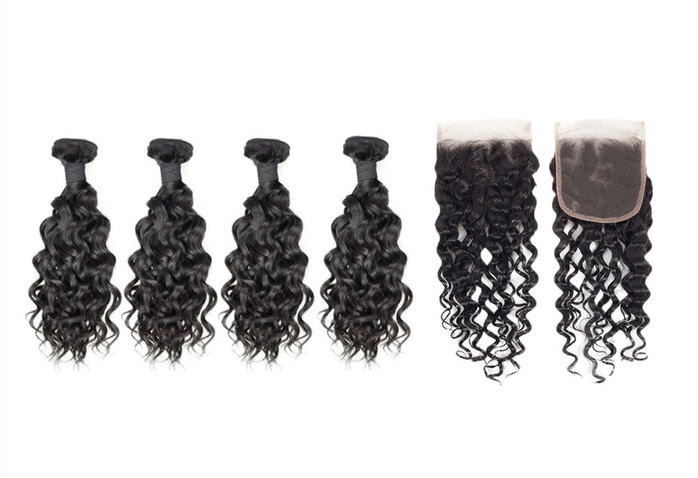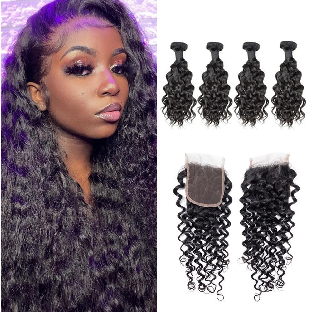Wolf king water wave 4 bundles with 4*4 HD transparent closure natural color 100% human hair