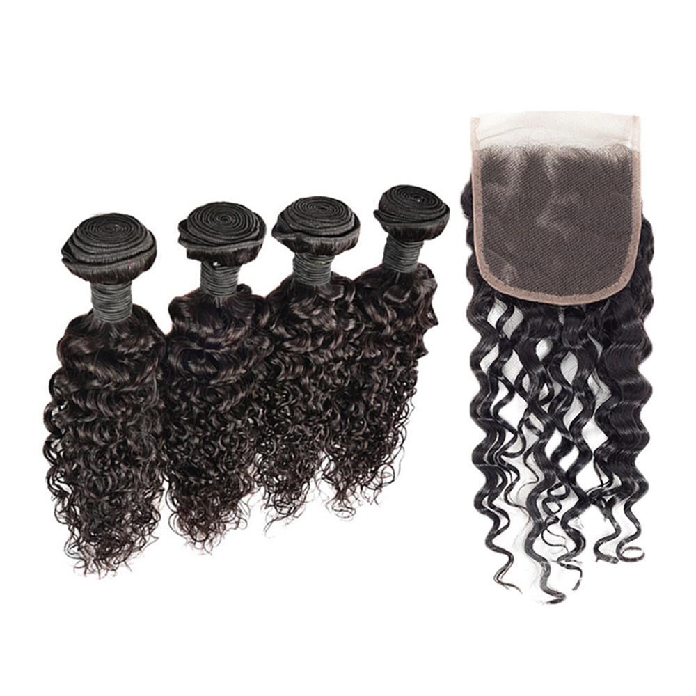 Wolf king water wave 4 bundles with 5*5 HD transparent closure natural color virgin human hair weft